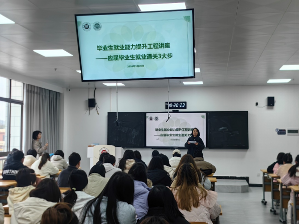 讲座围绕求职全流程,聚焦简历打造、面试应答、合同核对、求职避坑四大核心板块,系统解析了应届生在求职各环节的关键要点,清晰呈现从简历打磨到入职签约的完整实操路径,为同学们从校园步入职场提供了全面且实用的指导。