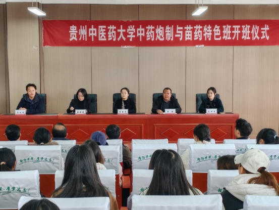 11月20日,贵州中医药大学药学院在花溪校区本草楼隆重举行2025年“中药学(中药炮制方向)”与“中药学(苗药特色班)”开班仪式。学校教务处处长柴慧芳、合作企业代表出席本次活动,药学院党委班子成员、方向班授课教师及全体选课新生共同参加。仪式由药学院党委委员、苗医药研究院副院长胡成刚主持。此次开班标志着学校在深化校企合作、传承中医药特色技艺、培养高素质应用型人才方面迈出了坚实的一步。